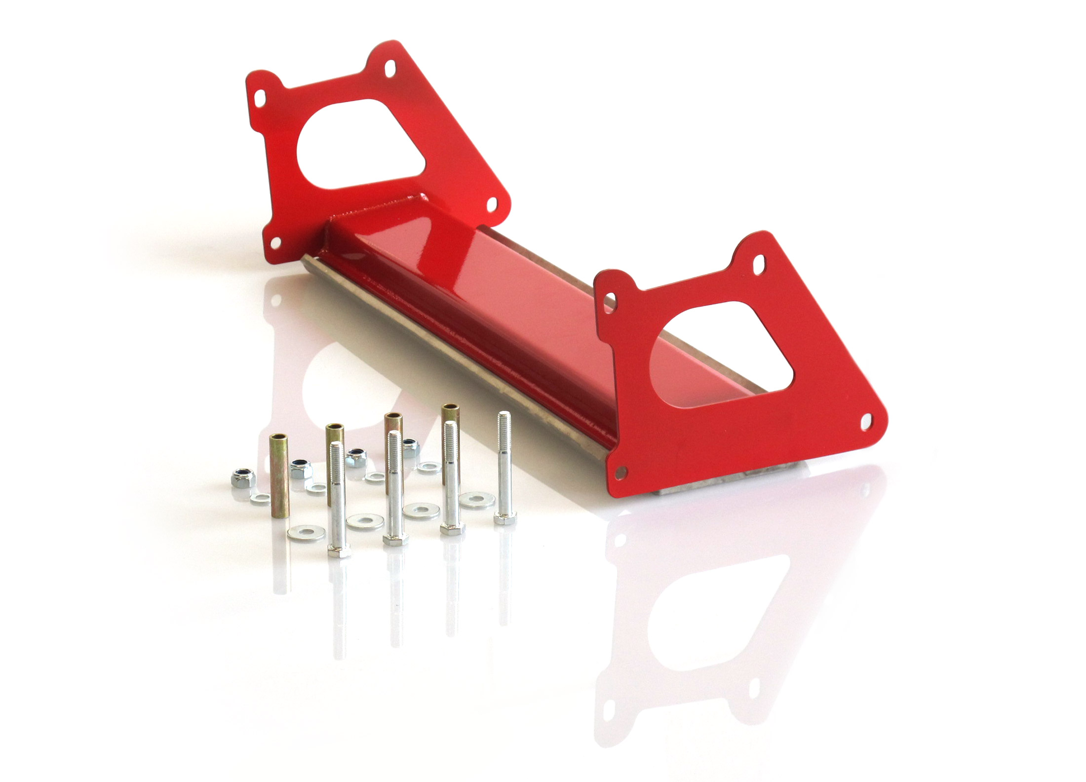 E' composta da una parte strutturale in acciaio (ovvero la traversa vera e propria) che viene fissata al telaio attraverso i fori originali e da una slitta paracolpi in duralluminio da 8 mm, fissata alla traversa stessa.
