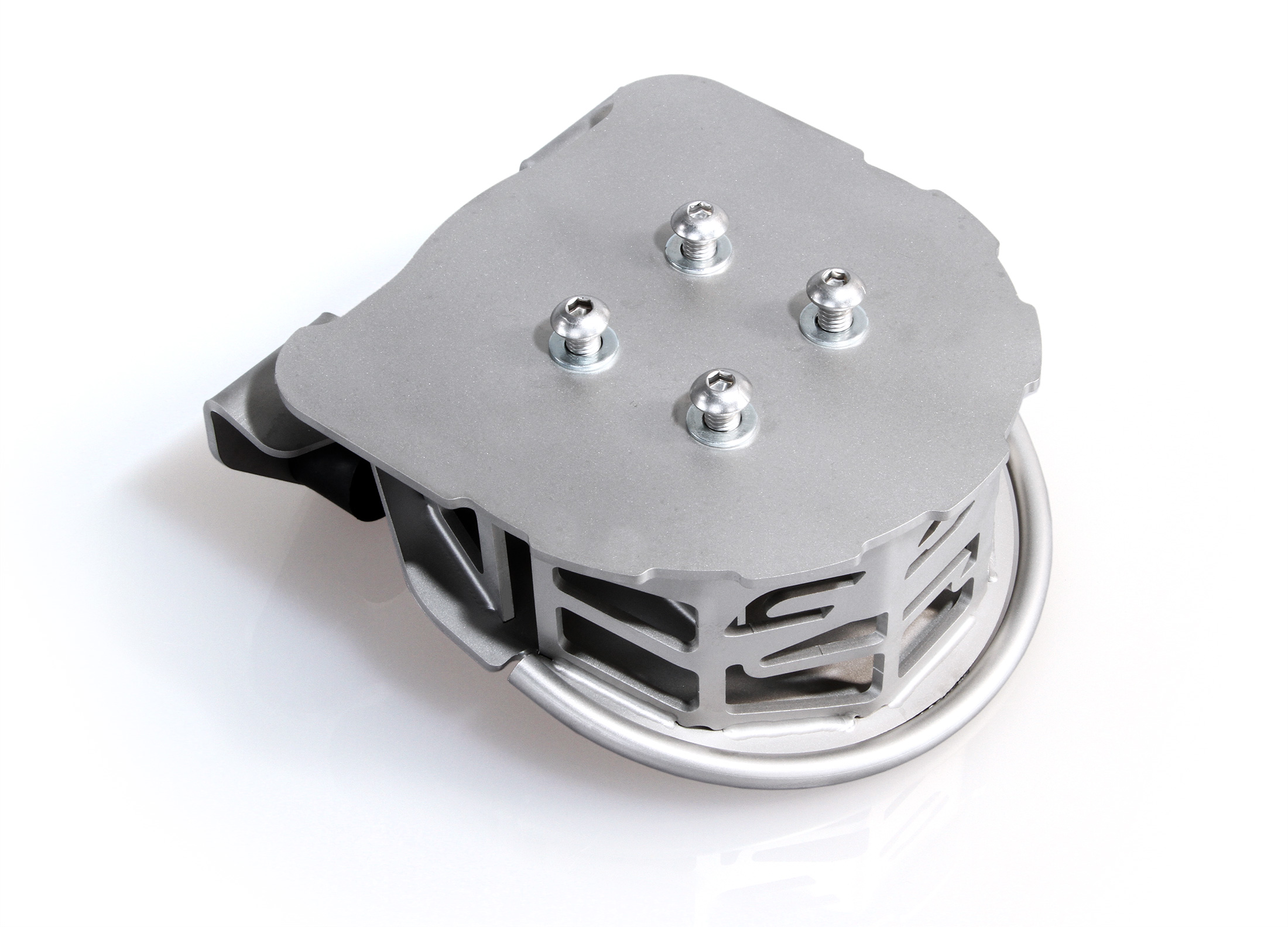 Staccamolla composto da slitta in acciaio e scivolo in materiale polimerico. Permette la dislocazione della molla e il suo rientro corretto in posizione indipendentemente dalla lunghezza dell'ammortizzatore.