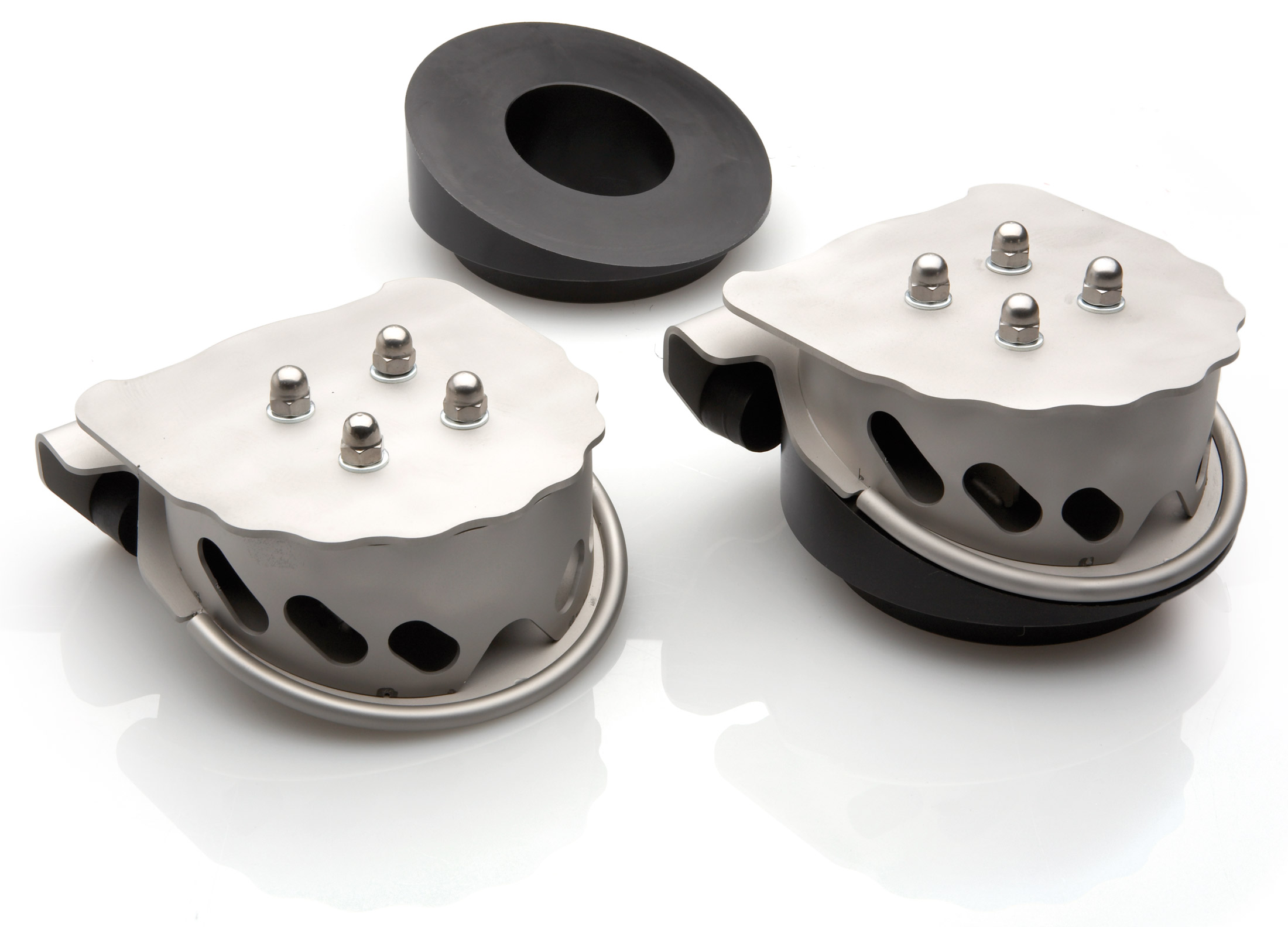 Anelli rinforzati per torrette ammortizzatori anteriori, dotati di viti di fissaggio.
