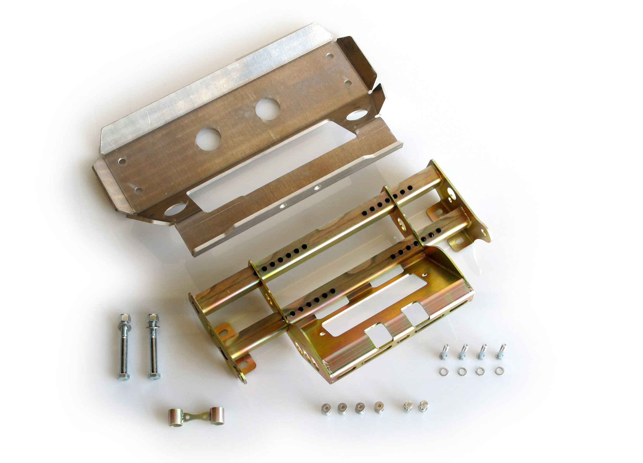 Il kit è compost da un telaietto appositamente studiato per ospitare qualsiasi tipo di verricello a sviluppo orizzontale che viene fissato in maniera solidale alla parte posteriore del telaio dell'auto e viene raccordato dalla piastra di protezione realizzata in duralluminio da 8 mm.