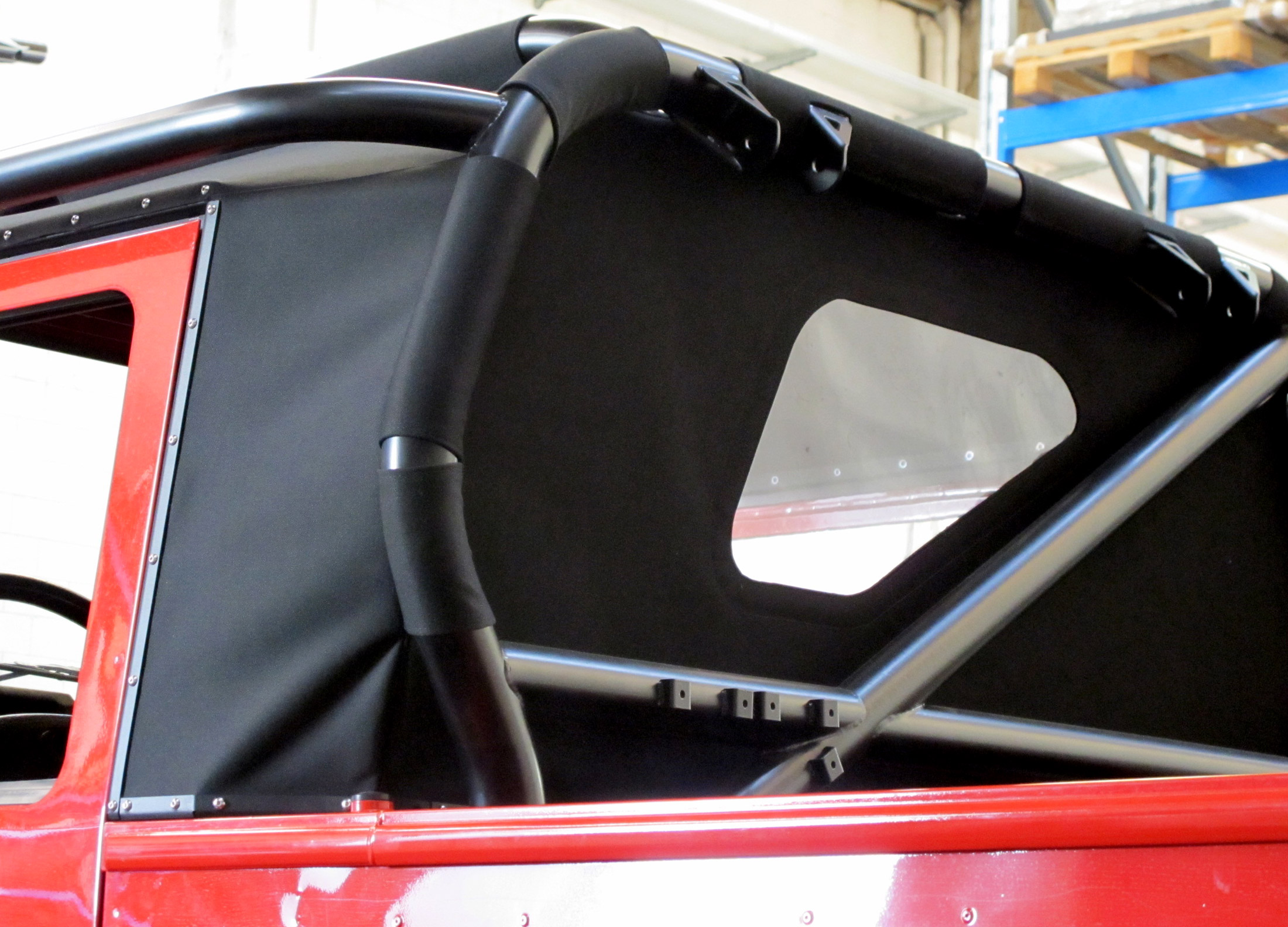 Sostenuto esternamento dal roll-bar, senze centine interne, consente la rimozione rapida con un giro di cerniera.